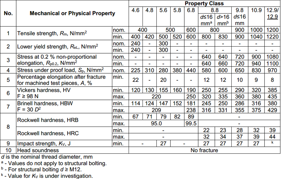 Bảng cơ tính của Bu Lông Tiêu Chuẩn ISO 898-1